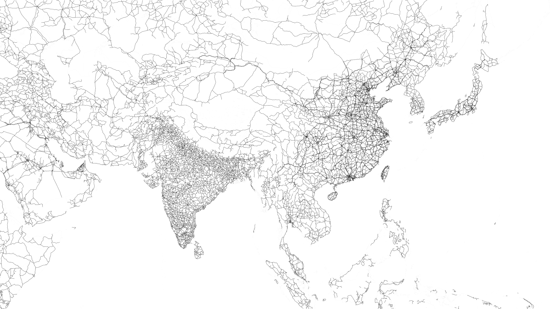 海外の掲示板、Redditに投稿された、河川のみで描かれた世界地図「Planet of Rivers」と道路のみで描かれた世界地図「Planet of Roads」をまとめて紹介します。上記に掲載した2種類は、アジア地域の川の地図、そして道路の地図です。以下、他の地域の「川の地図」「道路の地図」を掲載しています。